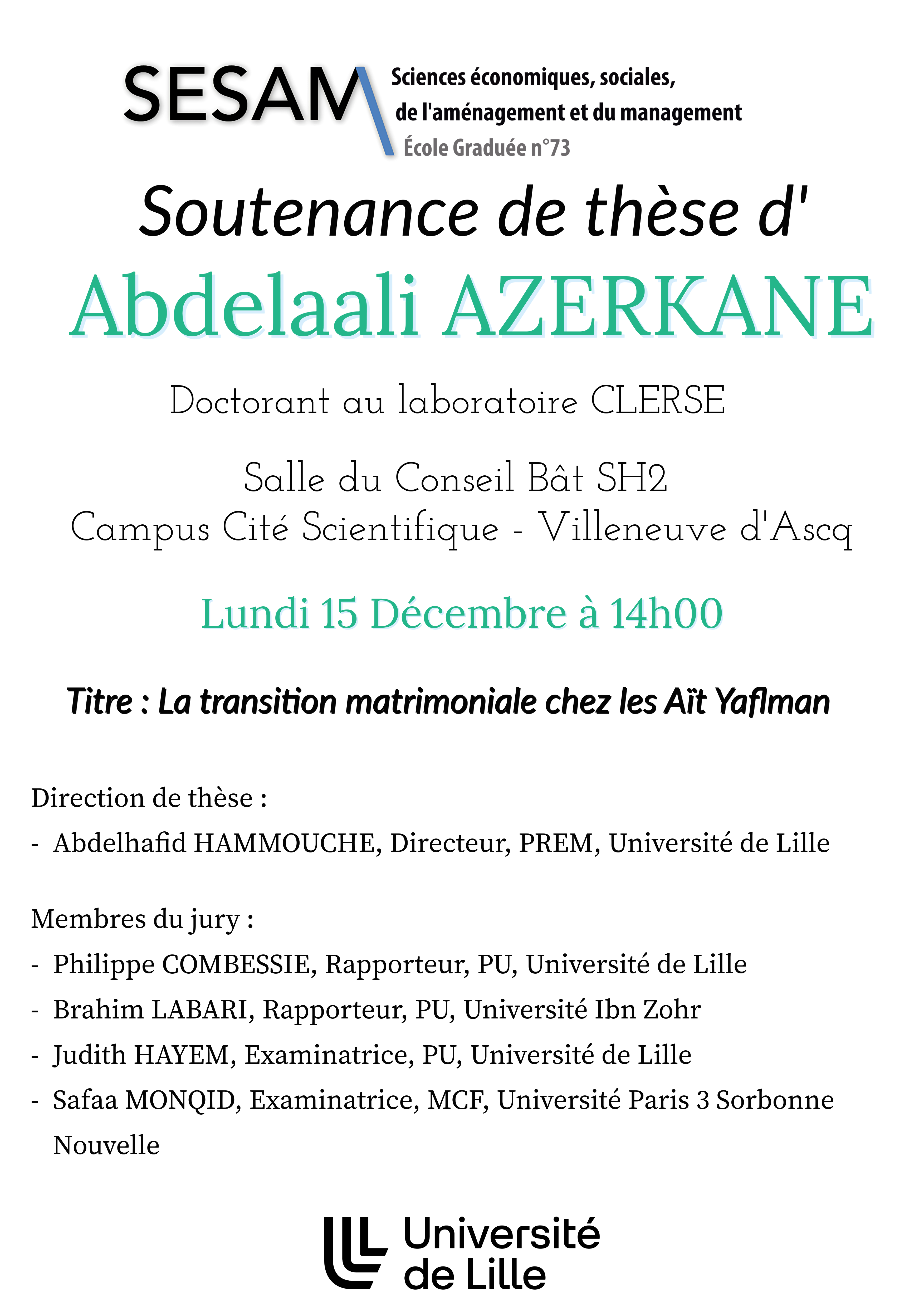 Soutenance de thèse de Monsieur A.AZERKANE 15déc. Partager sur Twitter Partager sur Facebook Salle du Conseil Bât SH2 Cité Scientifique