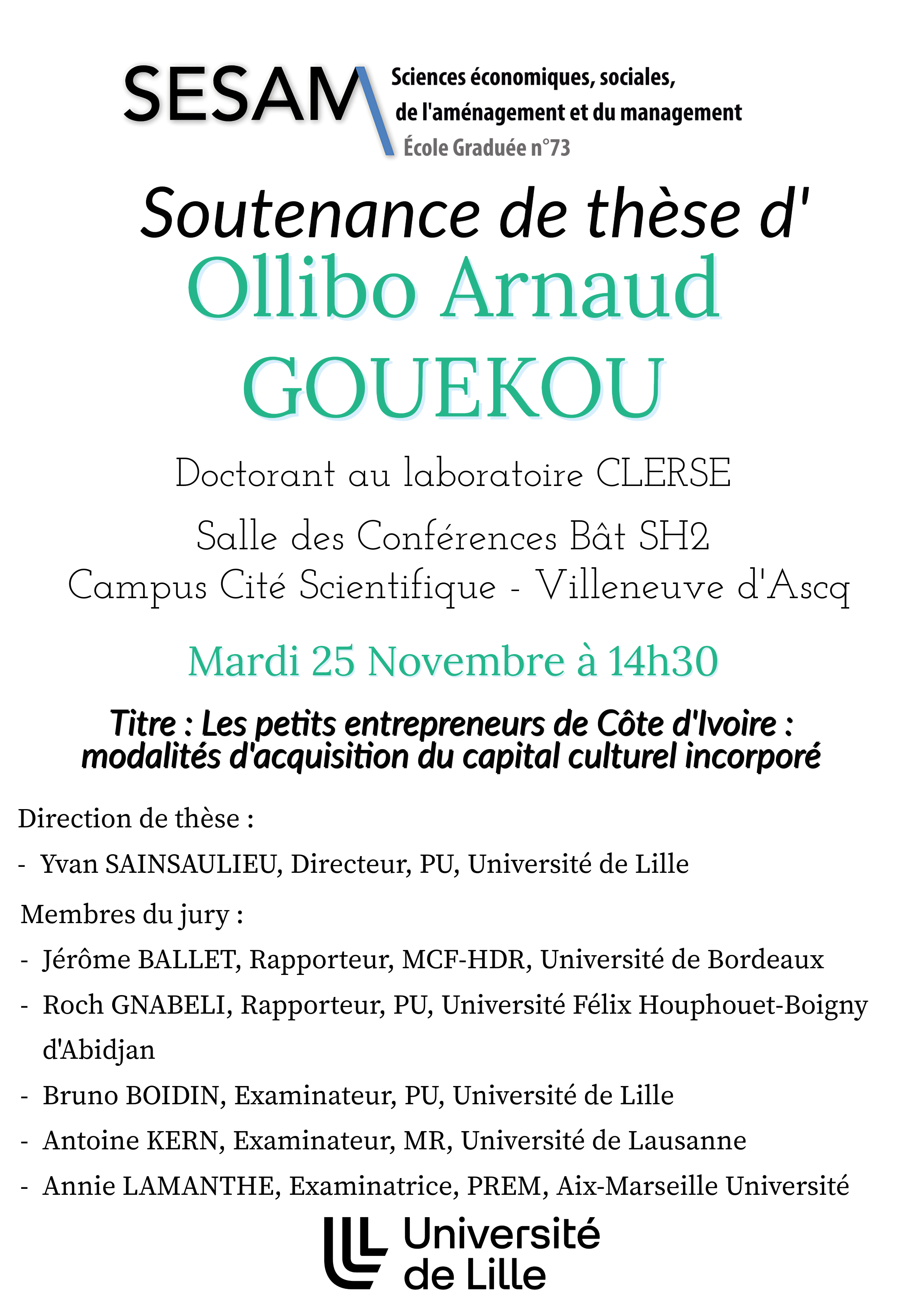 Soutenance de thèse de Monsieur O.GOUEKOU 24nov. Partager sur Twitter Partager sur Facebook Salle des Conférences Bât SH2 Cité Scientifique