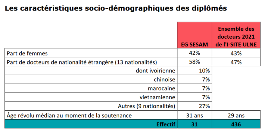 Les résultats de cette étude concernent le devenir professionnel des docteurs de l'ED SESAM, diplômés au cours de l’année civile 2021.
